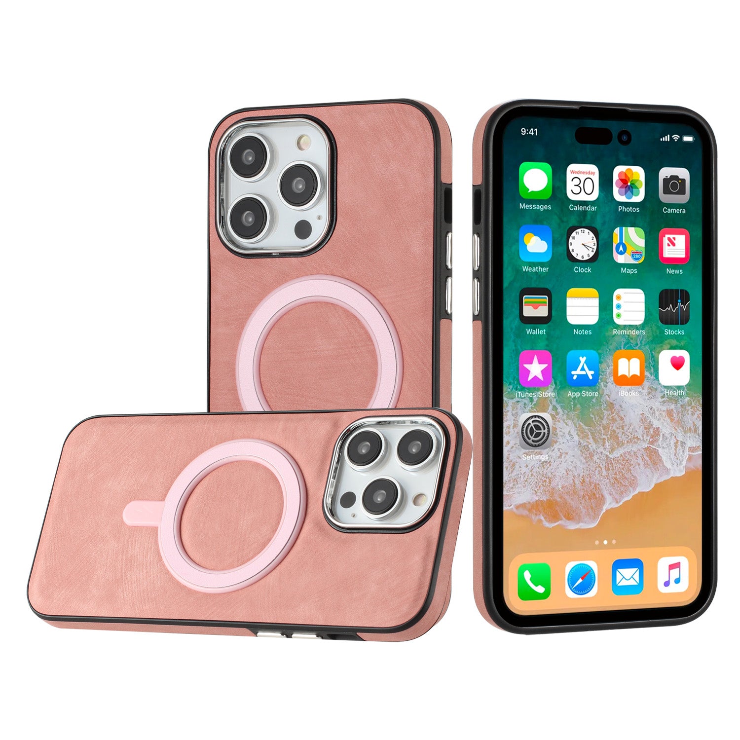 For iPhone 15 Fashion PU Vegan Chrome Edged Case Cover - Pink